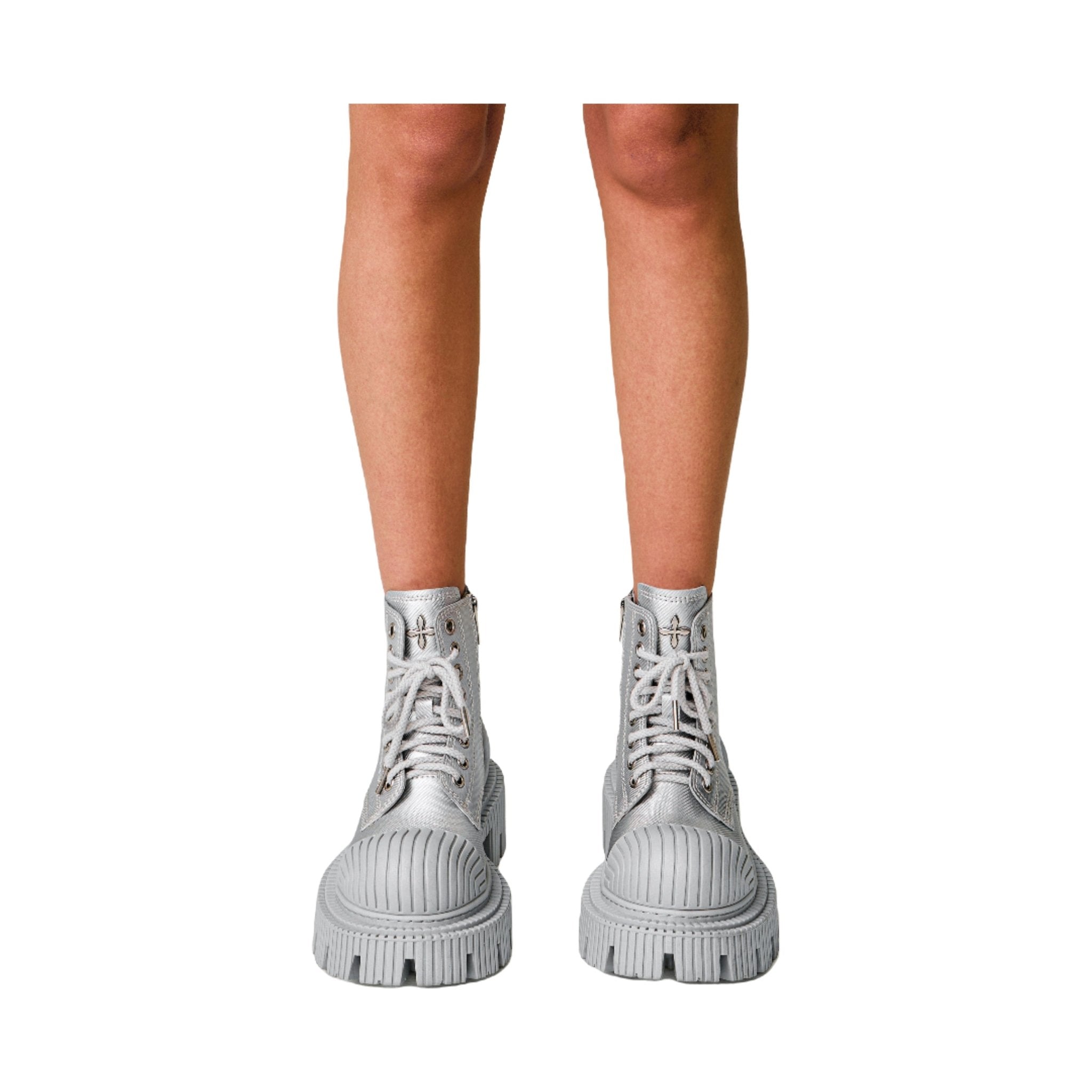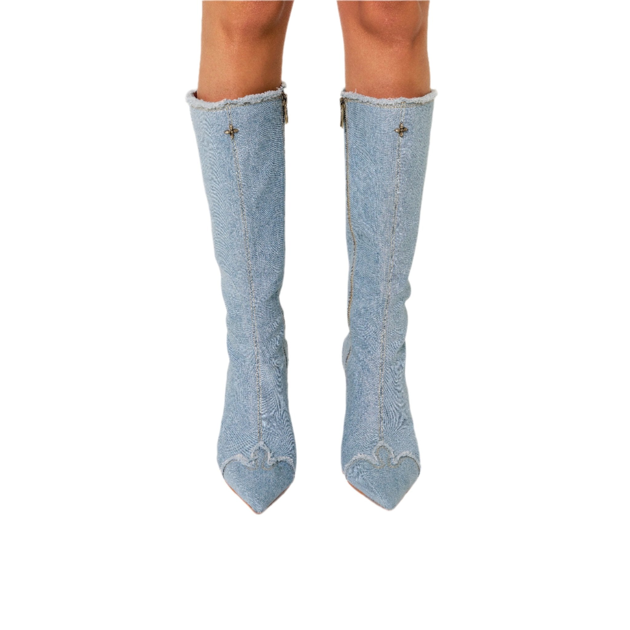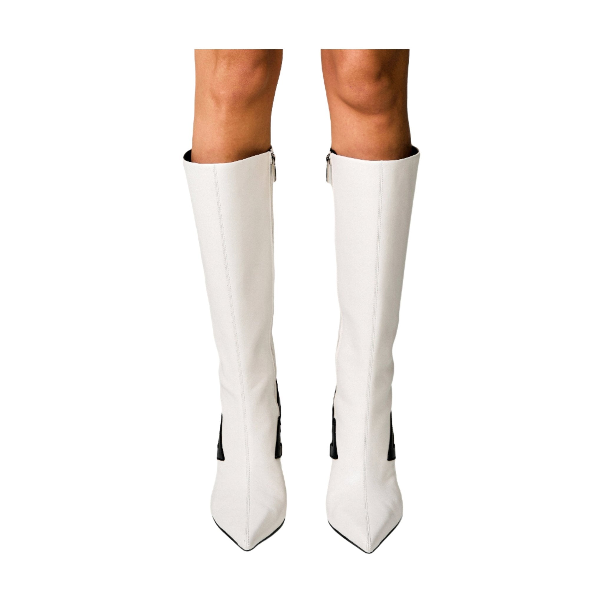 Compass Badge Sword Leather High Heel Boots In Creamy Patina