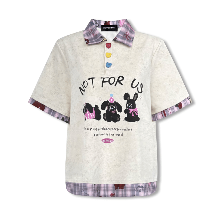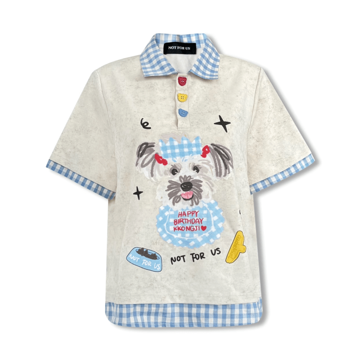 Irregular Letter Embroidered Short-sleeved Shirt In Black and White