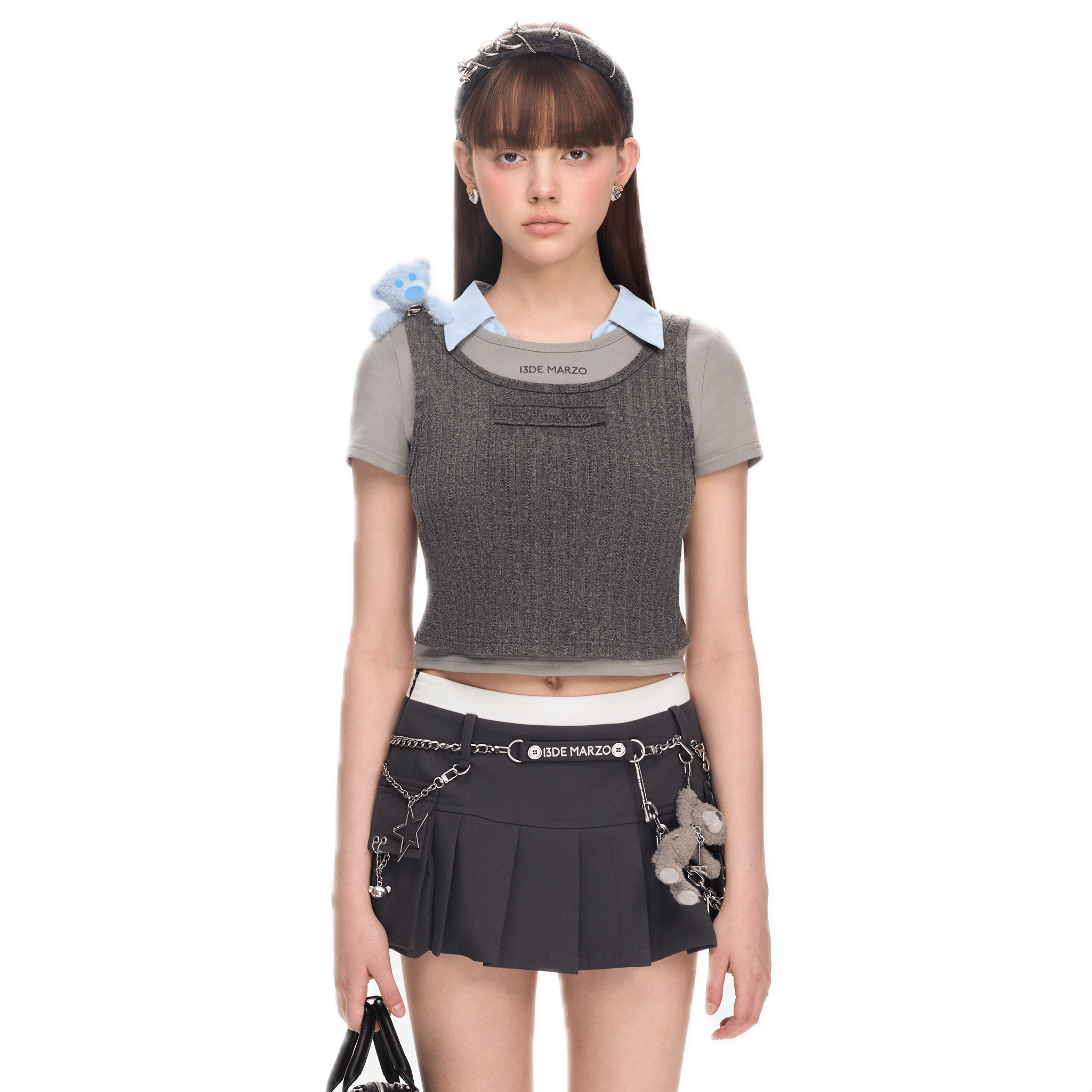 Gray Light Elastic Fake Two-piece Long Sleeves