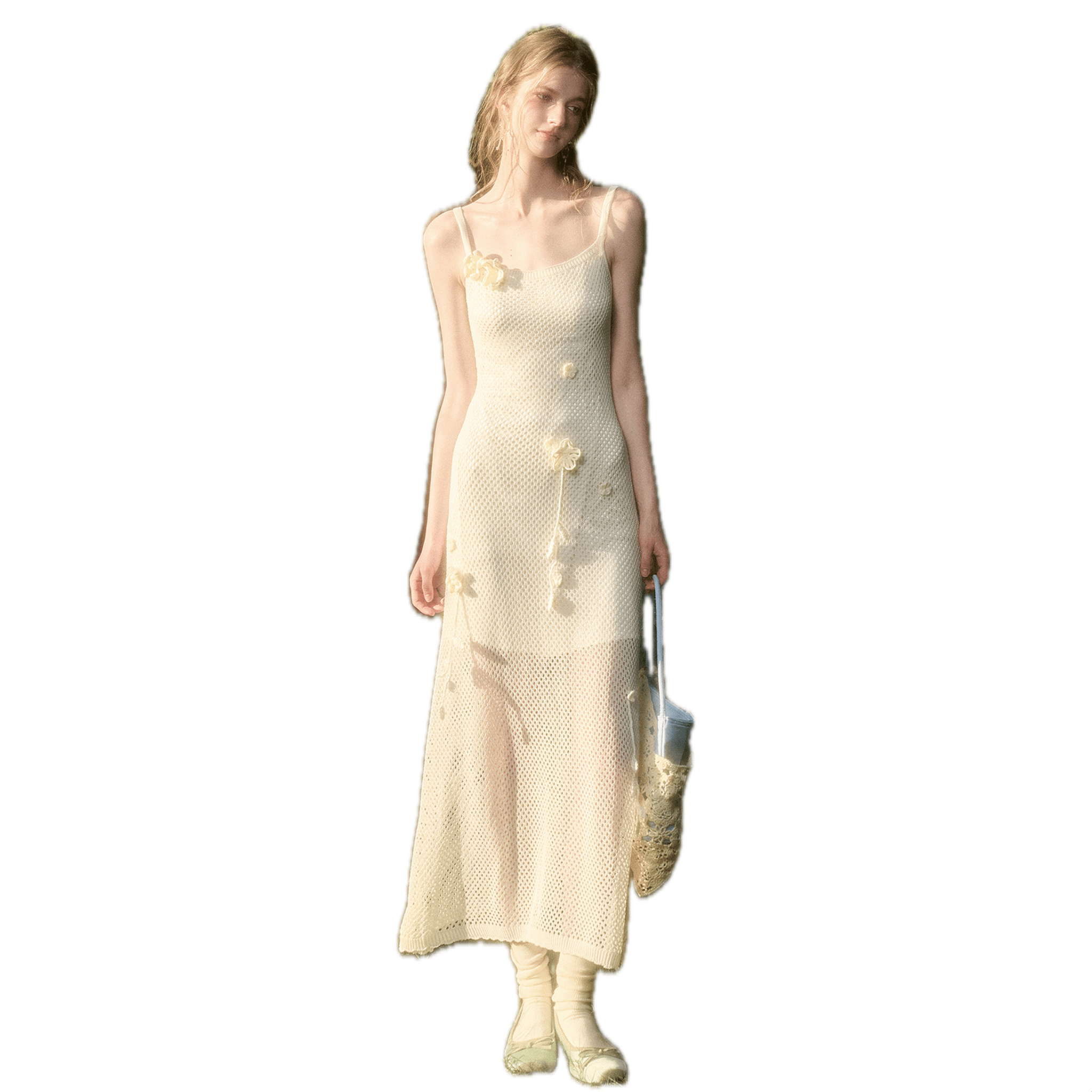 Bevel Lace Shimmering Sequined Sling Dress In White