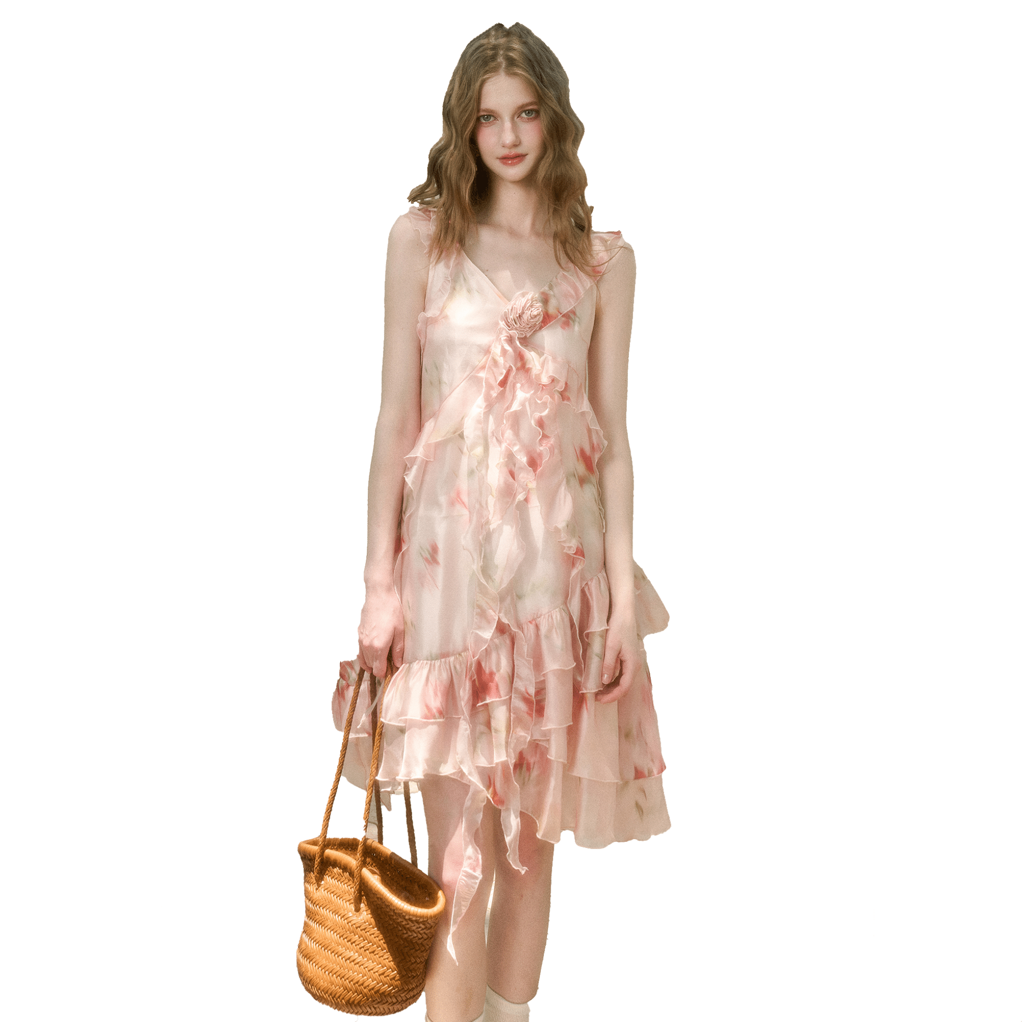 Irregular Multi-layered Hem Lace Shirt Dress In Floral Color