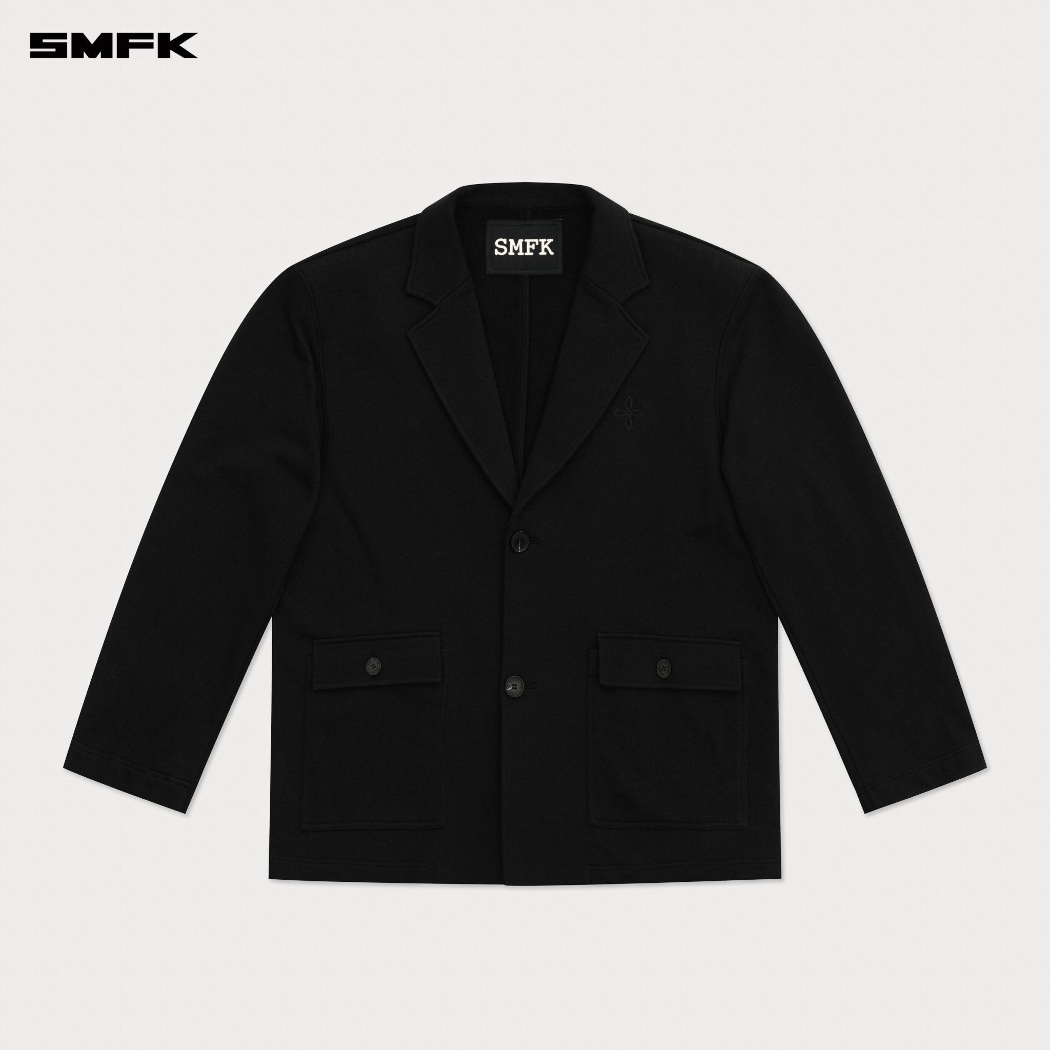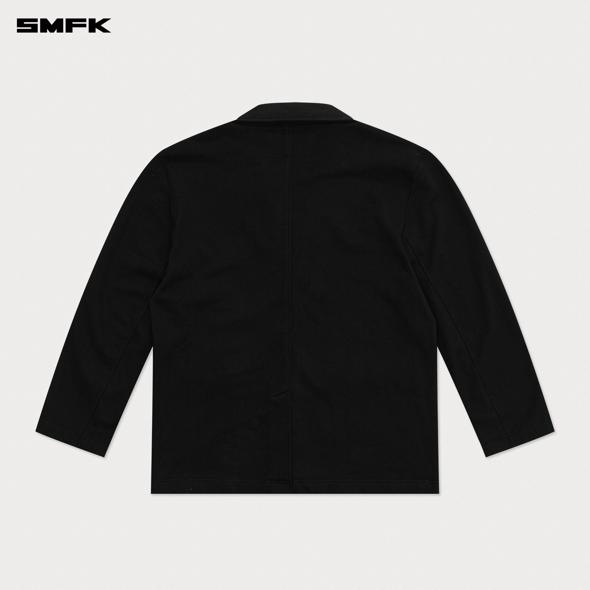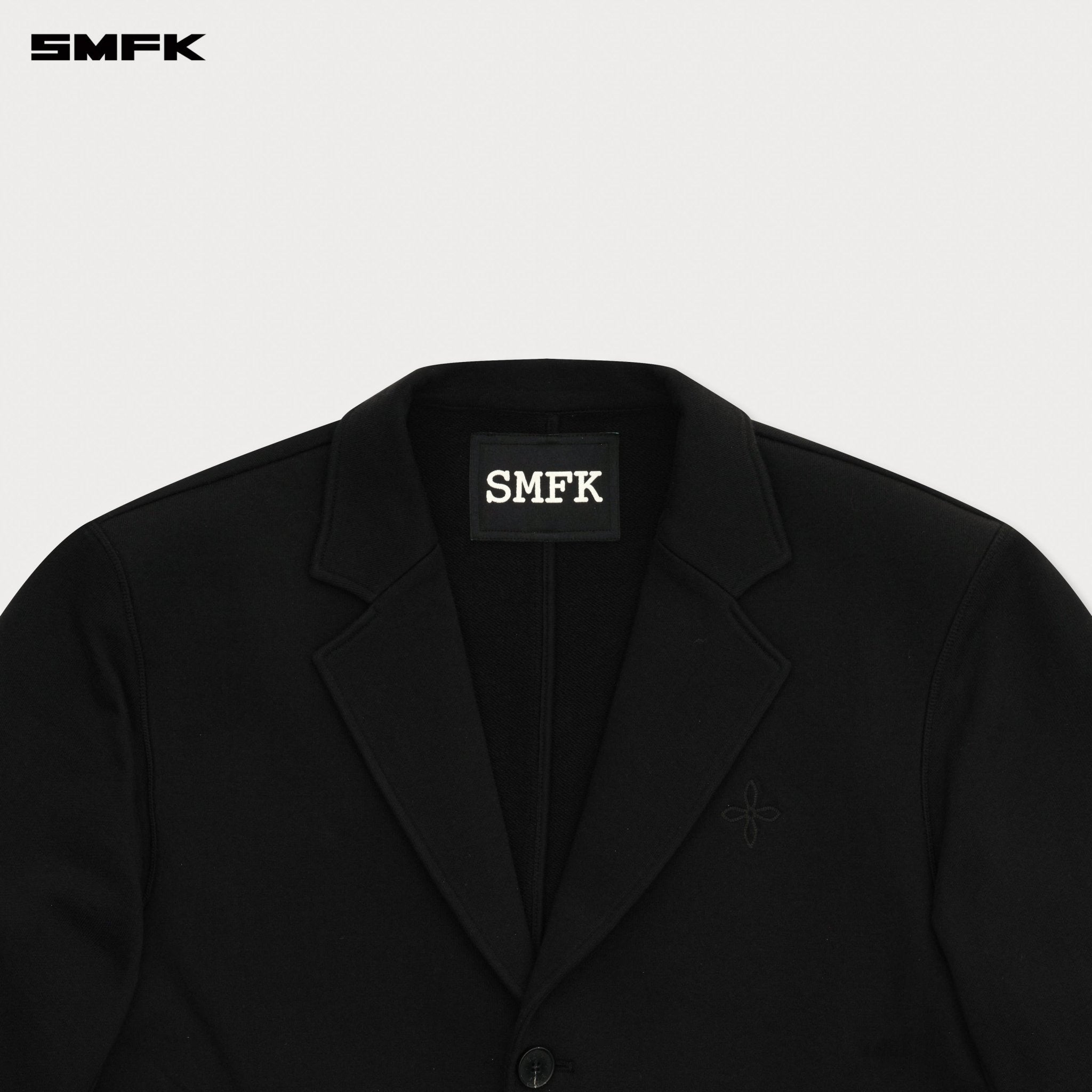 - Design: SMFK Designer Series features a more minimalist design, with a focus on the structure of the silhouette and the combination of fabrics. Classical clothing styles are crafted from sports ring cotton, with custom-made dense and heavy ring cotton, offering a relaxed sweatshirt experience while maintaining the appearance of formal wear. The overall silhouette is akin to double-sided wool, but due to the characteristics of ring cotton, the lining is omitted, and the cuff button set is removed. A subtle cocoon cut is applied to the waist of the main body.