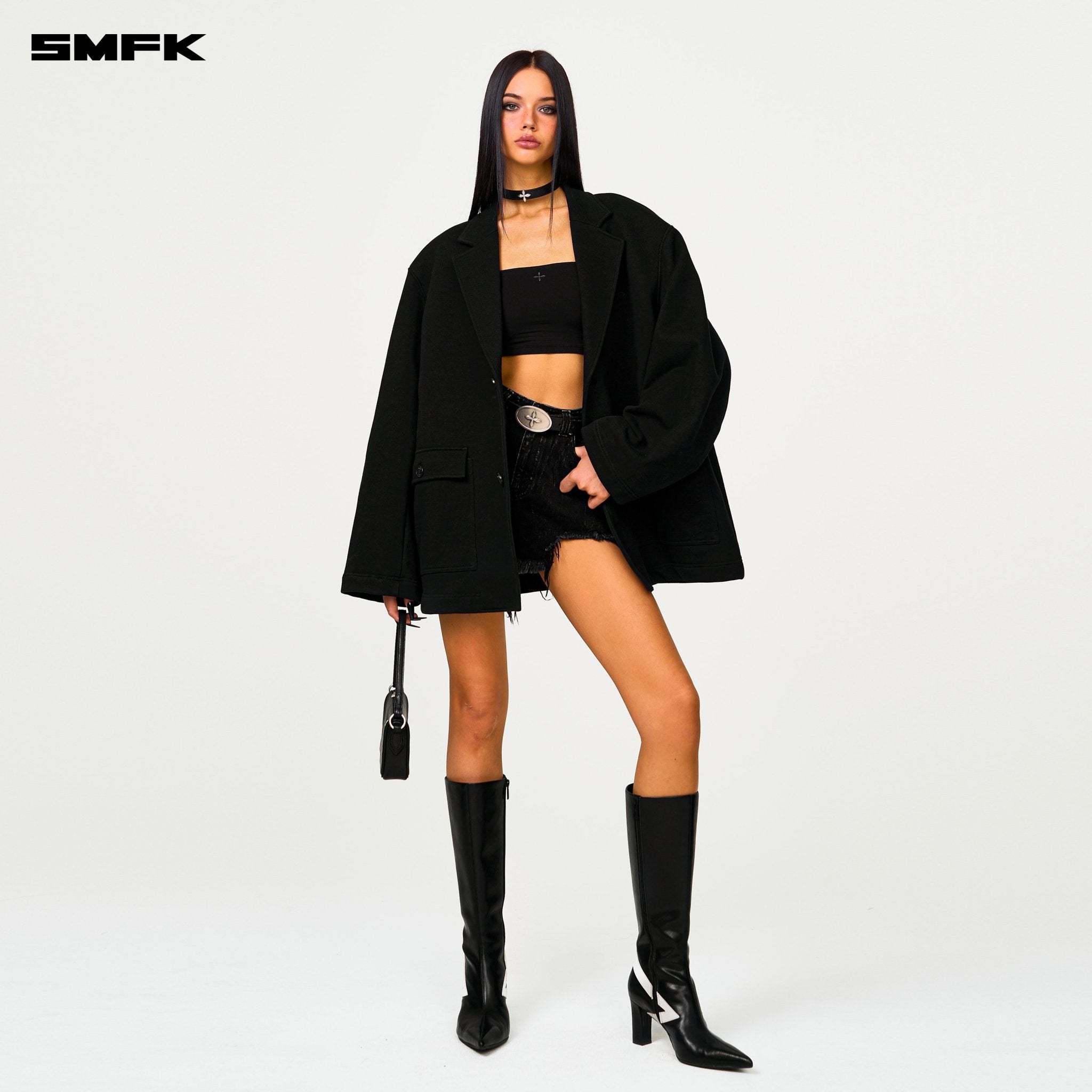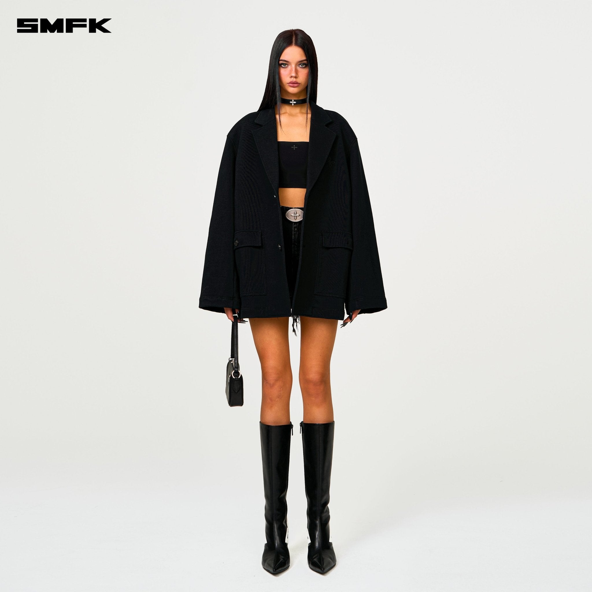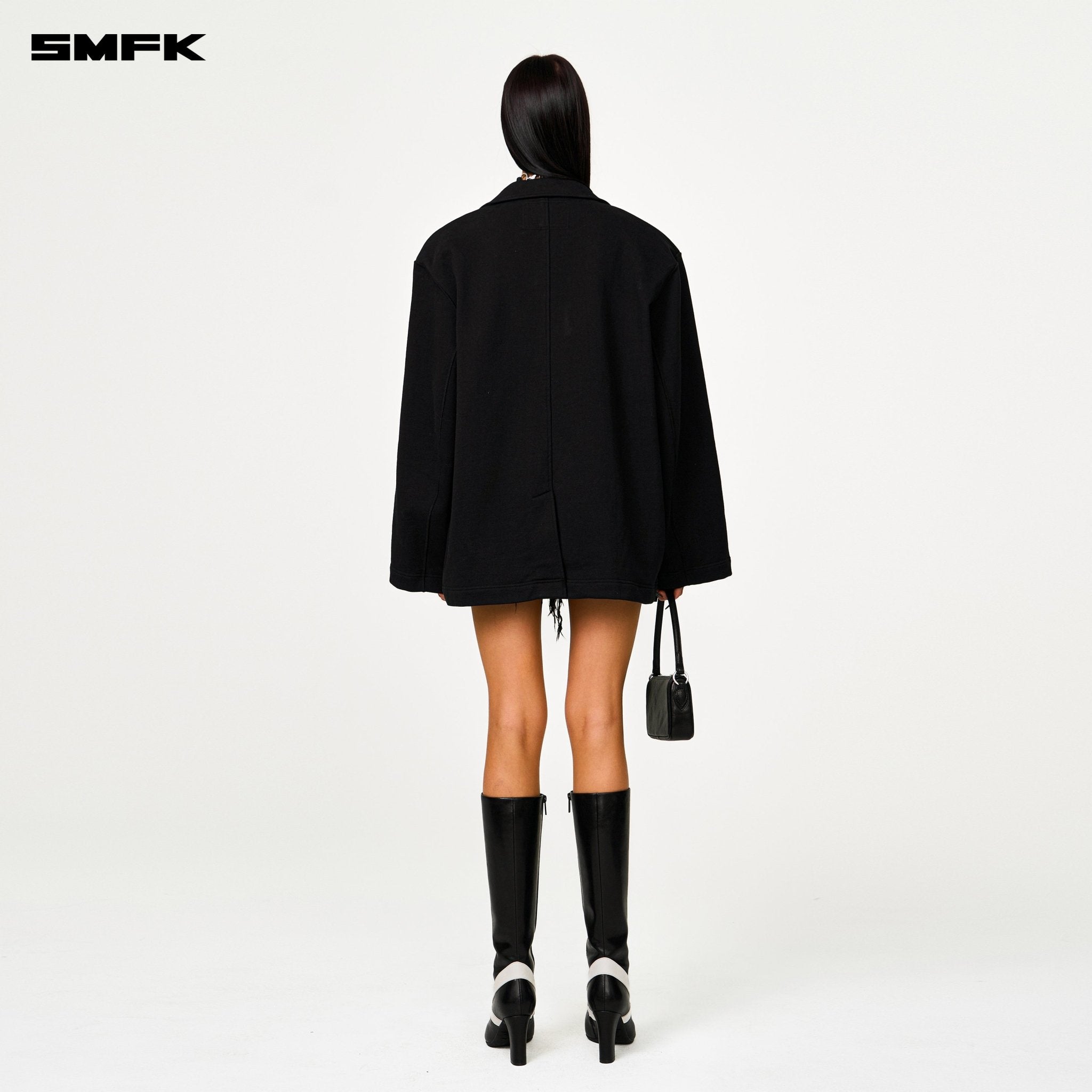 - Design: SMFK Designer Series features a more minimalist design, with a focus on the structure of the silhouette and the combination of fabrics. Classical clothing styles are crafted from sports ring cotton, with custom-made dense and heavy ring cotton, offering a relaxed sweatshirt experience while maintaining the appearance of formal wear. The overall silhouette is akin to double-sided wool, but due to the characteristics of ring cotton, the lining is omitted, and the cuff button set is removed. A subtle cocoon cut is applied to the waist of the main body.