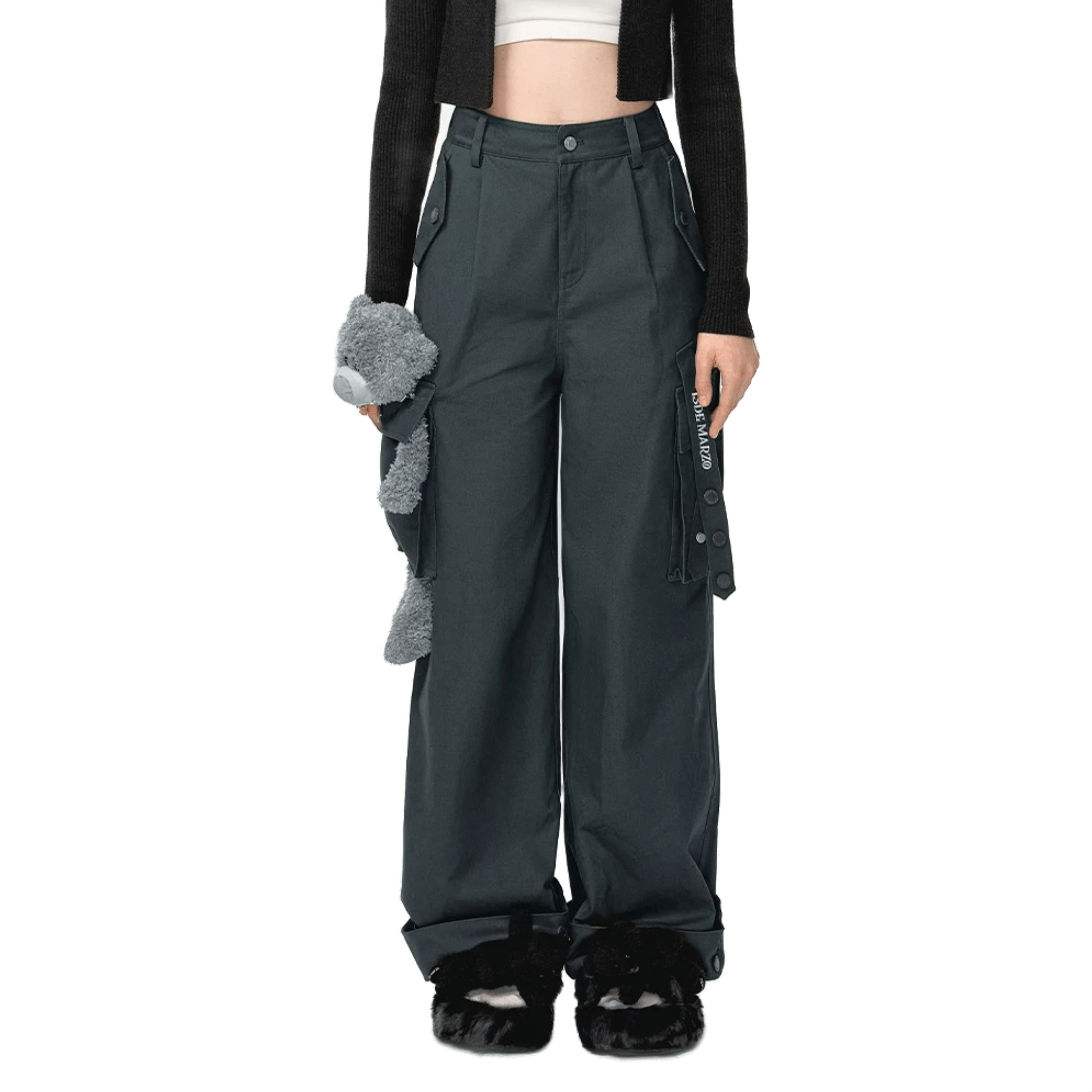 DENIM TROUSERS WITH IRREGULAR WAISTBAND in BLACK AND GRAY60% OFF