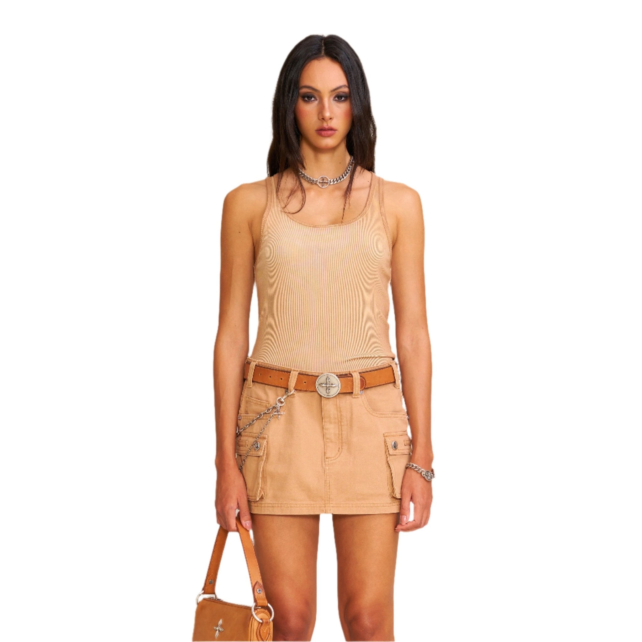 十字雕像皮毛一体高跟拖鞋 沙漠色