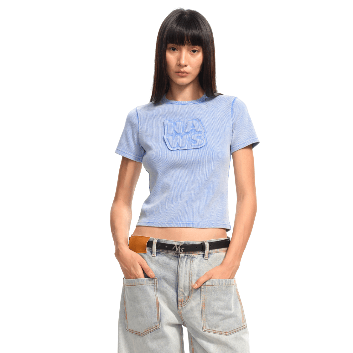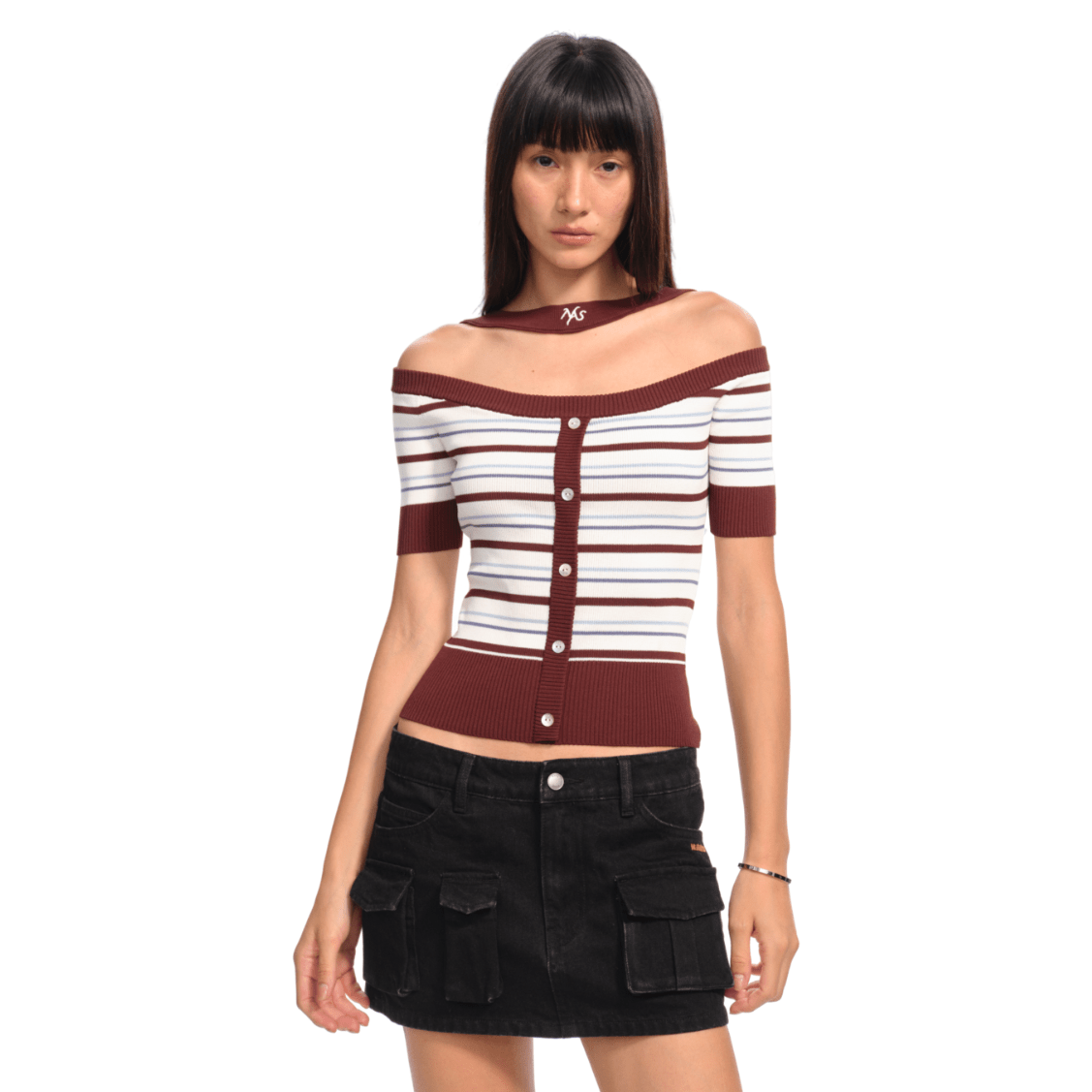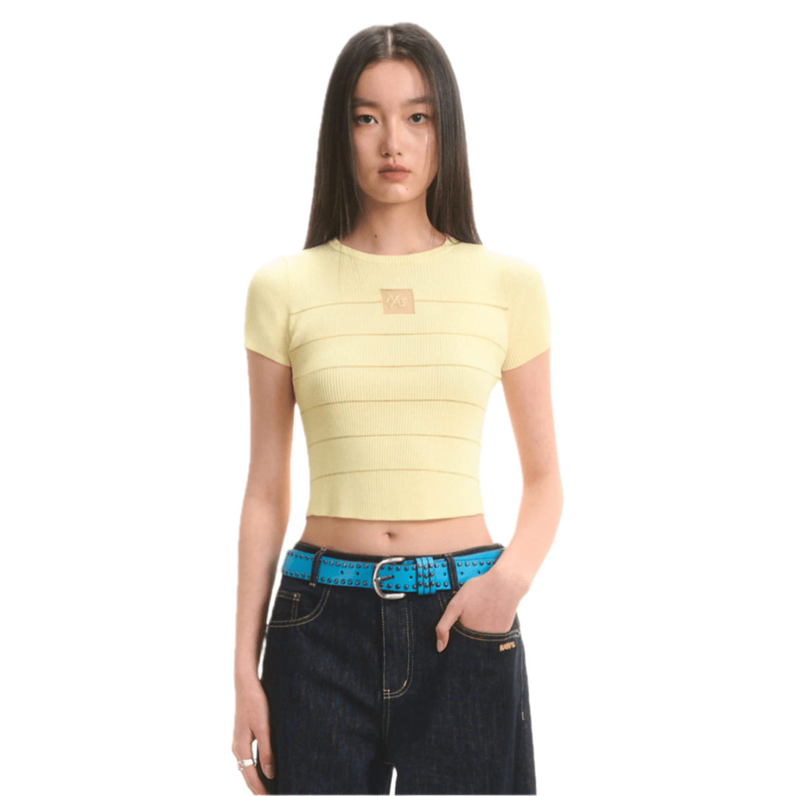 绒感格纹斜肩堆褶长袖T恤灰白格
