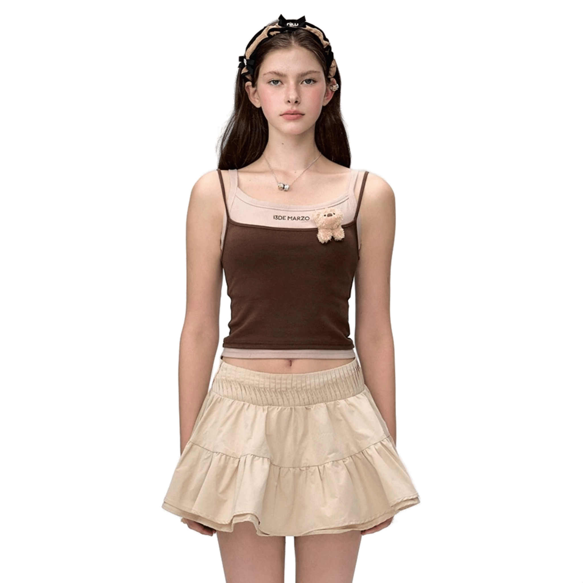 假两件拼接吊带咖啡色